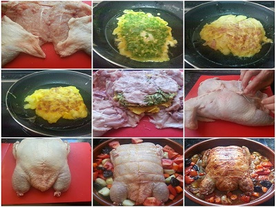 Deshuesamos el pollo y lo salpimentamos por fuera y por dentro.