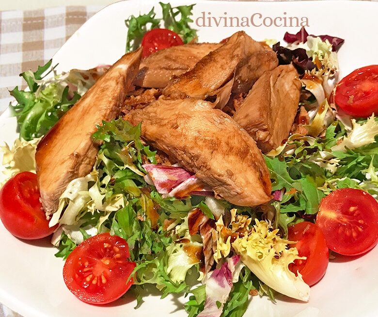 ensalada de pollo agridulceEsta receta de ensalada de pollo agridulce es deliciosa y facilísima de preparar, con ingredientes muy sencillos. Solo tienes que aderezar el pollo con los consejos que te damos, y a disfrutar!!