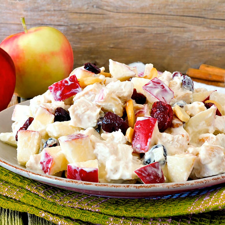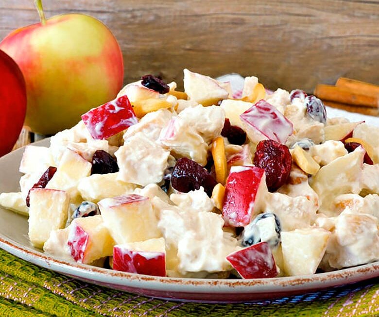 Esta ensalada de pollo con manzana y yogur es muy sencilla y se prepara en pocos minutos. La vinagreta de yogur le aporta un toque fresco muy original.