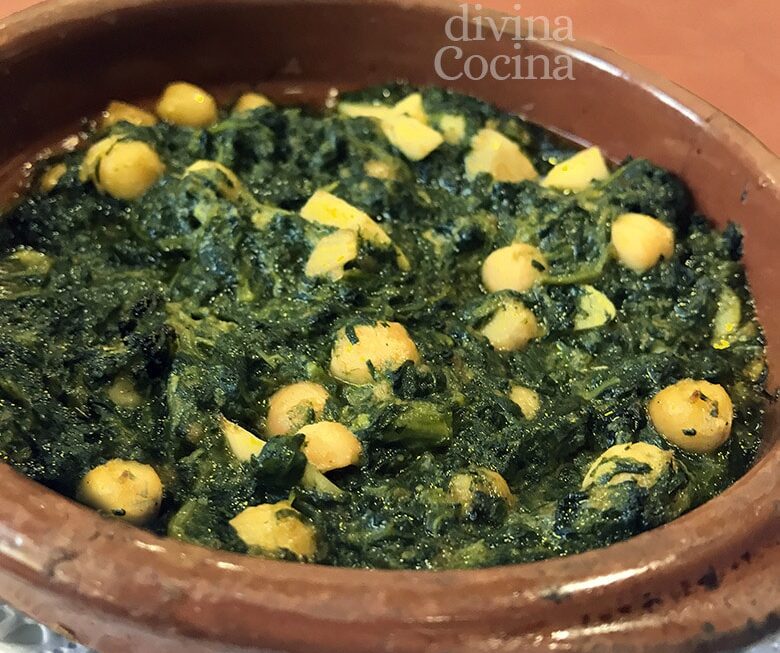 Esta receta de espinacas con garbanzos es tradicional de la cocina andaluza. Es también una tapa típica en muchos bares de Sevilla y de Andalucía en general.