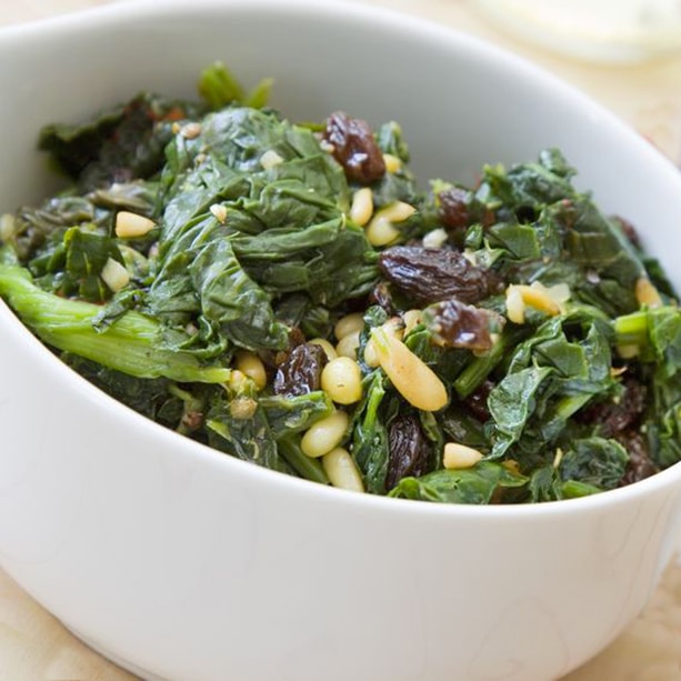 Con esta receta de espinacas con pasas y piñones puedes preparar en un momento un entrante sano y sabroso, o una guarnición de primera para cualquier plato. Es muy fácil.