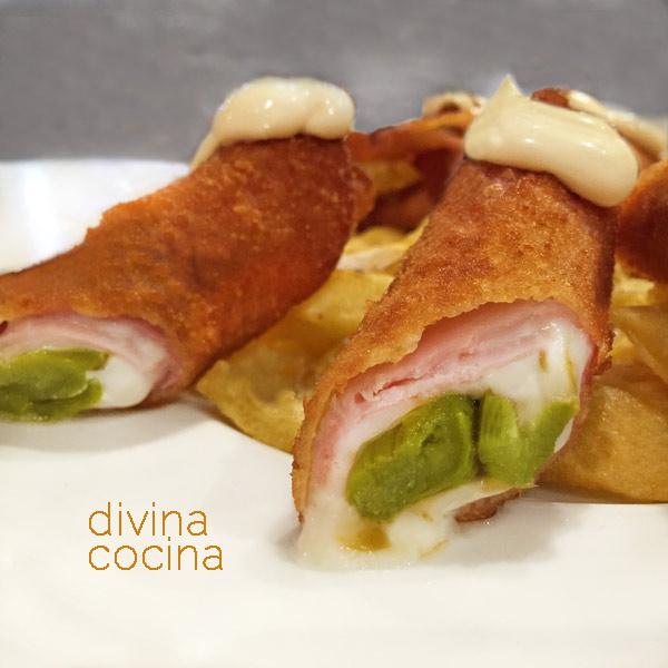 Esta receta de flamenquines de espárragos se puede preparar tanto con espárragos trigueros como blancos. La elaboración es sencilla y el resultado siempre gusta a todos.