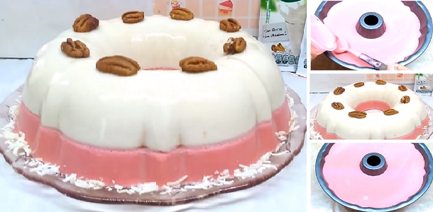 A qui les dejo esta rica GELATINA HORCHARTA Y FRESA 4 INGREDIENTES FACIL Y RAPIDO… Es una gelatina preparada con sobres para preparar bebida, sabor horchata y fresa marca Tang… espero les agrade!!!