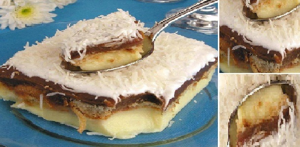Transfiera a una olla. Llevar al fuego medio para engrosar, sacar del fuego, añadir la crema de leche y mezclar bien. Coloque la crema en un refractario de 34cm X 20cm y encima haga una capa de galletas. Coloque en una olla a otra lata de leche condensada, la mantequilla y el chocolate. Llevar al fuego, media, revolver hasta quedar como una masa bien blanda y colocar sobre las galletas. Bati la crema de leche hasta que se vuelva chantilly y ponga sobre la crema de chocolate.