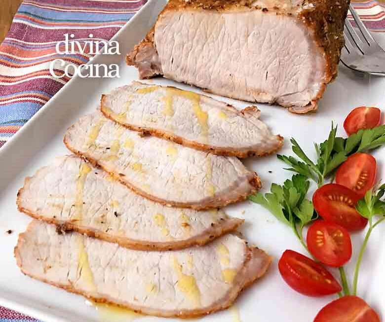 1. No hay que limpiar el lomo si tiene una capita de grasa por encima, porque así nos quedará más jugoso en el horno. Además la capa de grasa hace un poco de ‘escudo’ contra la sal para que no tome demasiada.