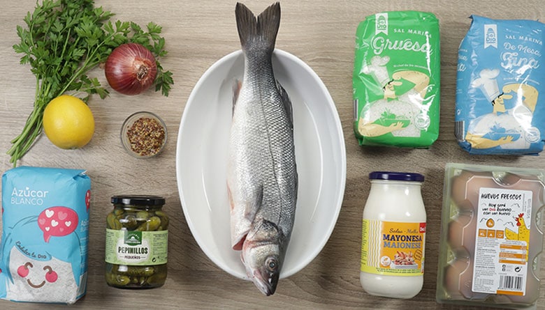 - La proporción para hacer la mezcla de sal con la que cubriremos el pescado es de 3 partes de sal gruesa por una parte de sal fina.