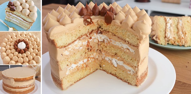 Pastel Tres Leches con Mousse de Dulce de Leche y Merengues