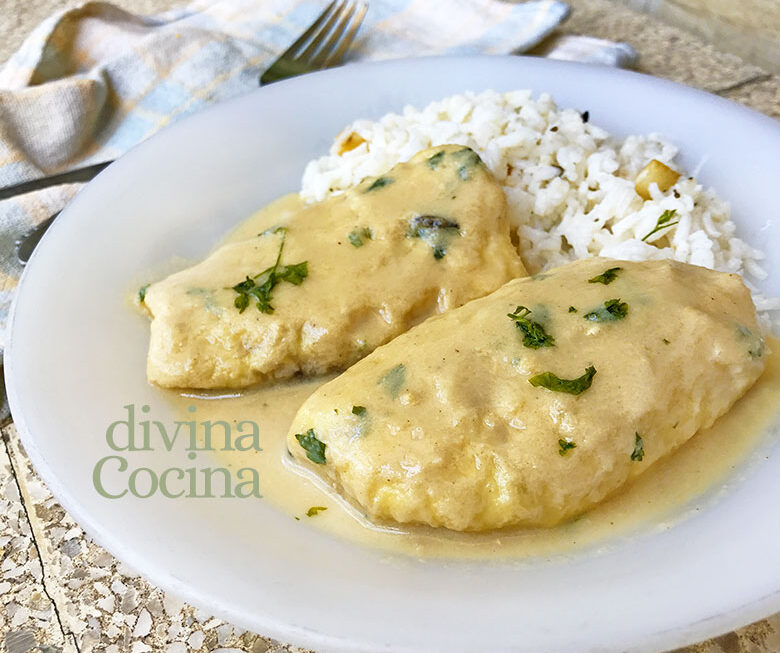 - La merluza a la crema se sirve al momento con un arroz blanco o unas sencillas patatas para guarnición a tu gusto.