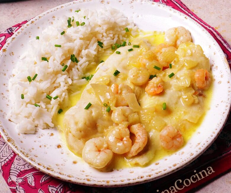 - Corregimos de sazón si es necesario. Servimos nuestra merluza al curry con el arroz basmati cocido. Puedes aromatizar el arroz salteándolo con mantequilla y hierbas frescas como cilantro o perejil picados.