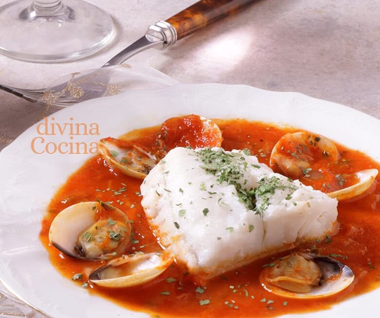 - Tapamos y dejamos cocinar la merluza en salsa 5-6 min revisando que no se pegue o se queme y que la merluza este hecha y las almejas se han abierto.