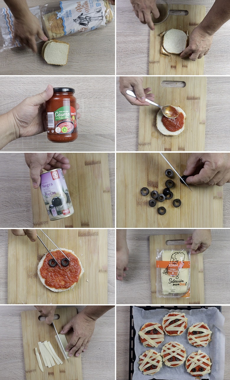 ELABORACIÓN de las mini pizzas momia para Halloween