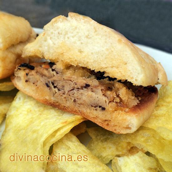 - Con está pringá se rellena el pan y se tuesta en un gril o en un tostador plano porque el montadito debe servirse caliente.