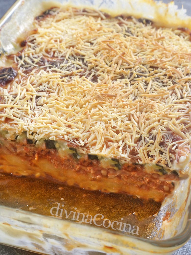 - Con esta misma receta de moussaka de calabacín se prepara la tradicional moussaka de berenjenas.