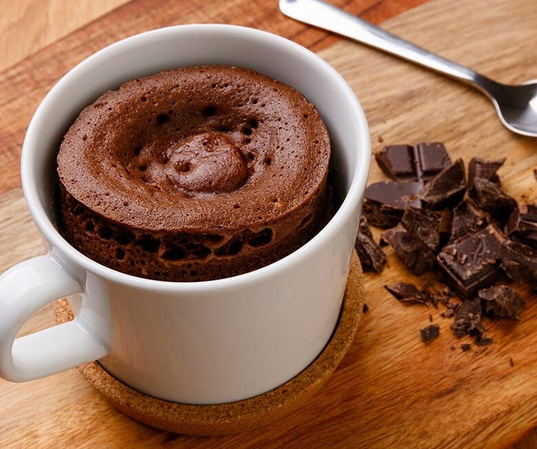 6. Servimos el mug cake de chocolate al momento, en caliente, porque cuando enfría va perdiendo textura.