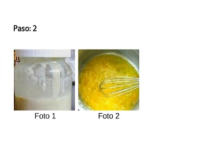 Espumado. Diluir en un recipiente la levadura junto con el azúcar, la harina y el agua tibia.