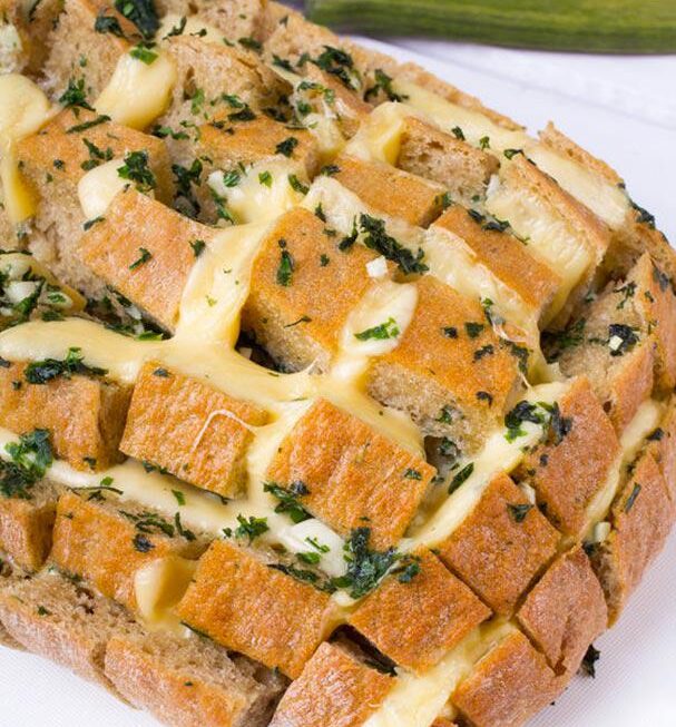 Este pan relleno de queso se sirve al momento, bien caliente, y cada comensal va desprendiendo un trozo de pan con su queso fundido. Es perfecto para compartir acompañando otros platos o como un entrante divertido al centro de la mesa.