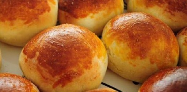 A massa é doce, mas depois de assada não parece. Pode-se rechear com geléia, manteiga, requeijão, goiabada etc.
