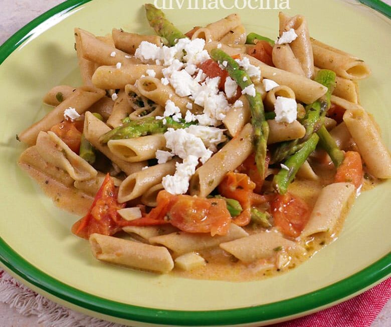pasta integral con tomate y esparragospasta integral con tomate y esparragos