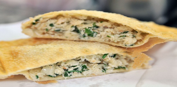 - Recheie cada folha, dobre ao meio e feche com um fechador de pastel ou apertando as bordas com a ponta de um garfo