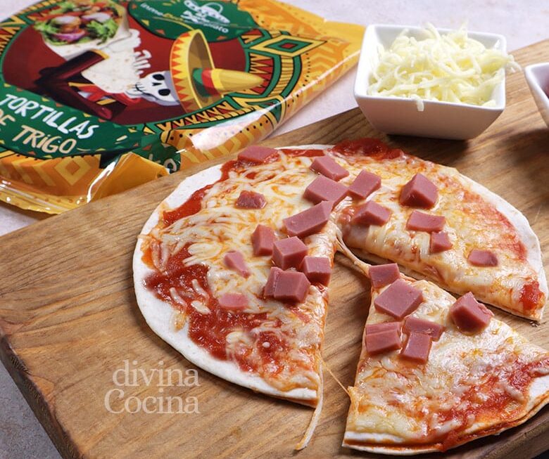 Esta receta de pizza con tortillas mexicanas en sartén (Pizzadilla) es facilísima de preparar y el resultado sorprenderá a grandes y pequeños. Se prepara sin horno, ¡¡y está buenísima!!