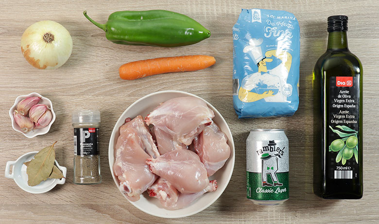 INGREDIENTES del pollo a la cerveza para 4 personas
