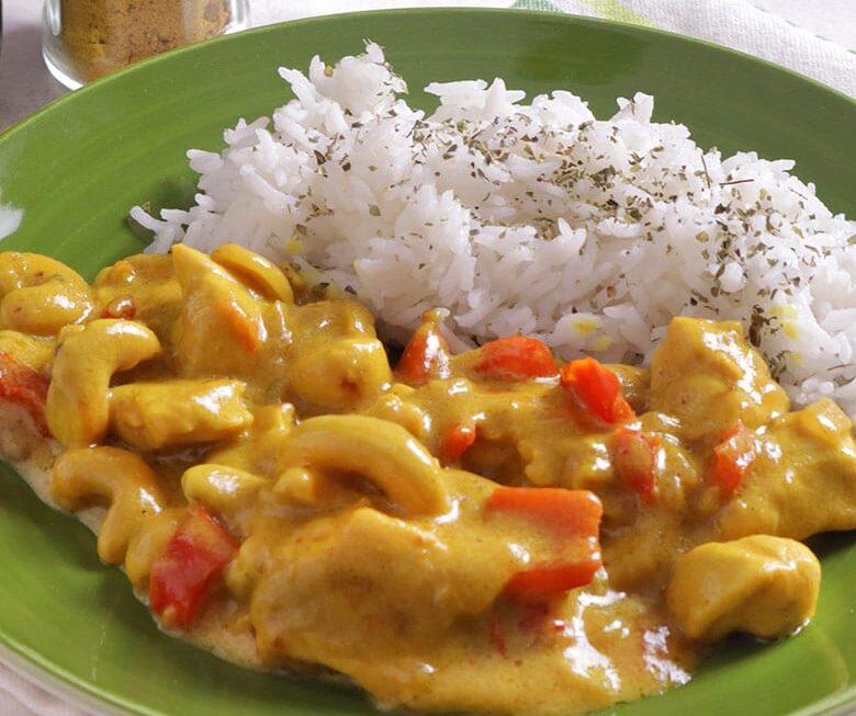 - Sirve el pollo al curry con anacardos caliente con arroz basmati cocido o salteado.