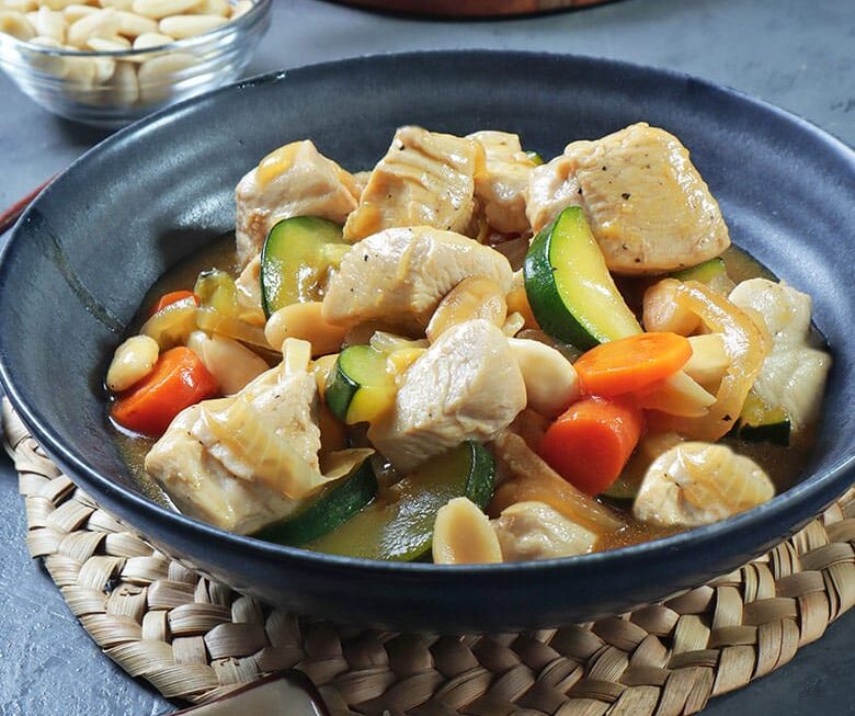 Esta receta de pollo con almendras al estilo chino se puede preparar con las verduras que tengas a mano, champiñones, setas (perfectas las shitake), puerros…