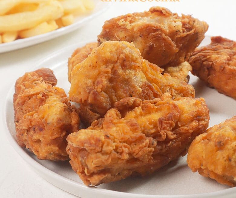 Esta receta de pollo frito estilo Kentucky es un clásico entre todas las recetas de pollo frito. El resultado es un pollo jugoso, aromático y crujiente.