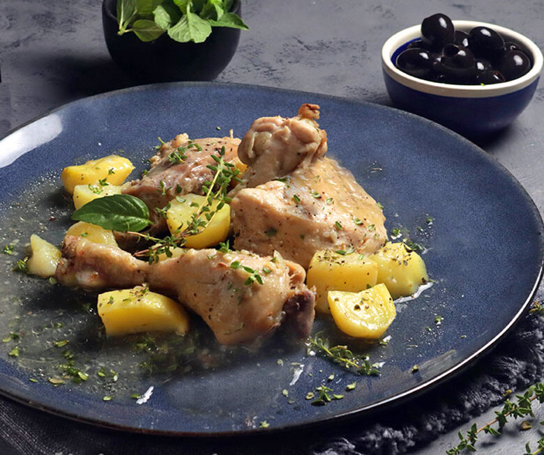 - Cuando esté terminado lo dejamos reposar dentro del microondas unos minutos para aprovechar el calor residual. Servimos al momento con las patatitas que se han asado con el pollo.