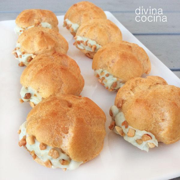 Profiteroles salados con crema de roquefort (en la foto superior)