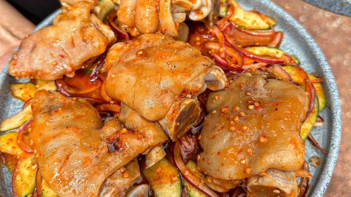 Ingredientes: 4 patas de cerdo limpias y cortadas en trozos, 2 cucharadas de aceite vegetal, 1 cebolla grande, finamente picada, 4 dientes de ajo, picados, 3 tomates medianos, picados, 2-3 chiles chiltepín (ajíes chiltepín), machacados o picados finamente (ajusta la cantidad según tu tolerancia al picante), Sal al gusto, Agua suficiente para cubrir las patas de cerdo.