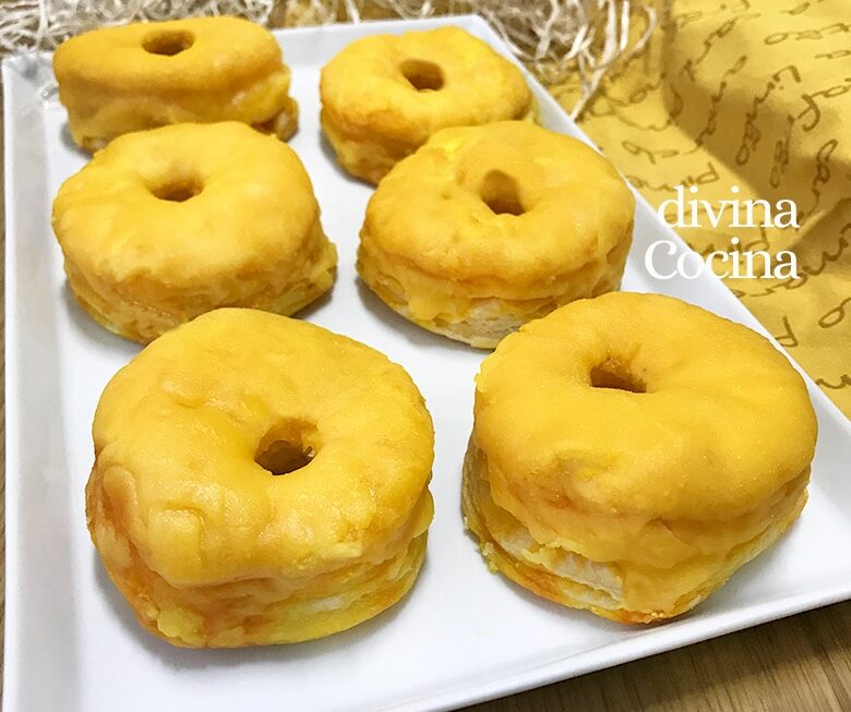 - Hasta que no estén frías las rosquillas de yema no podemos darle el toque final con el glaseado de azúcar. Sin el glaseado de azúcar están también muy buenas, por si no quieres complicarte ni aumentar más calorías.