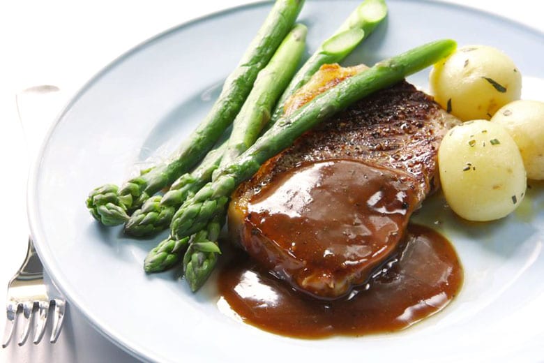 Esta salsa gravy se utiliza con las carnes ya preparadas a la parrilla, asadas o a la brasa. Es el mejor acompañamiento, y el más clásico, para filetes, salchichas y puré de patatas a lo largo del mundo.