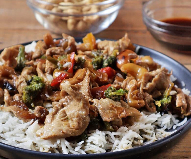6. Podemos servir el salteado de pollo al estilo oriental sobre una ‘cama’ de arroz blanco de grano largo, o presentarlo al lado, como guarnición.