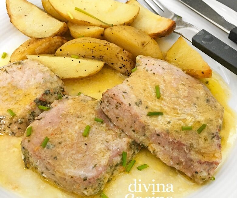 Hemos hecho el plato con un vino blanco seco, pero si quieres dar un toque más afrutado, puedes poner sidra en lugar del vino. En ese caso, sustituye la guarnición de patatas por unas manzanas troceadas y salteadas en mantequilla, o un puré de patatas aromatizado a tu gusto.