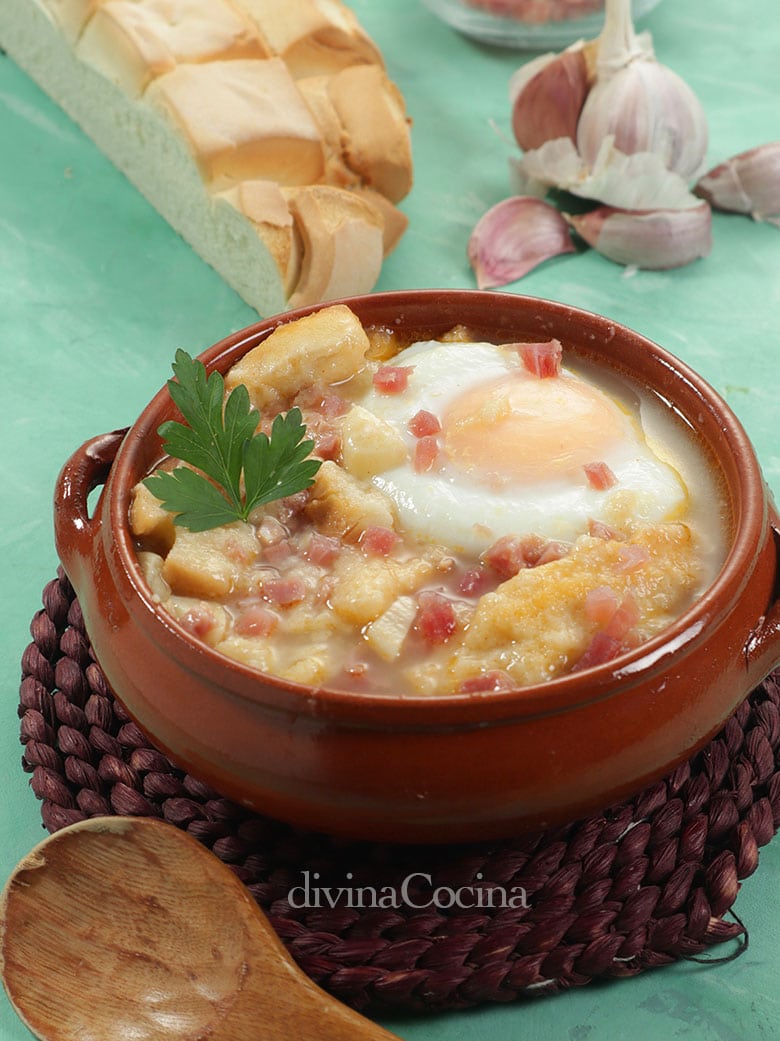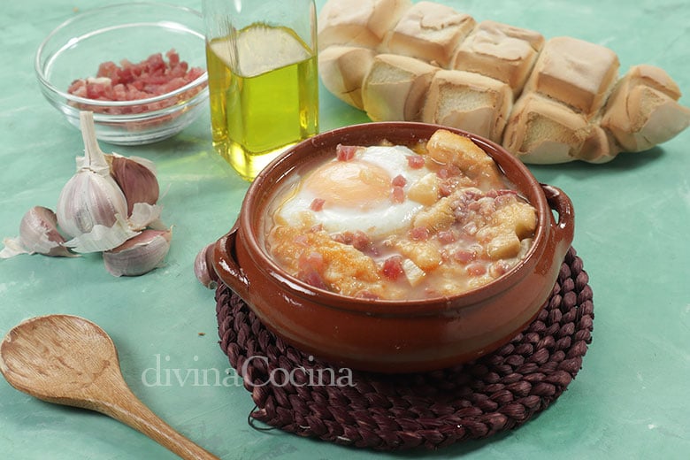 Este sencillo plato se prepara en pocos minutos. Con recetas parecidas a esta sopa castellana se preparan sopas de ajo por toda España con distintas variedades.