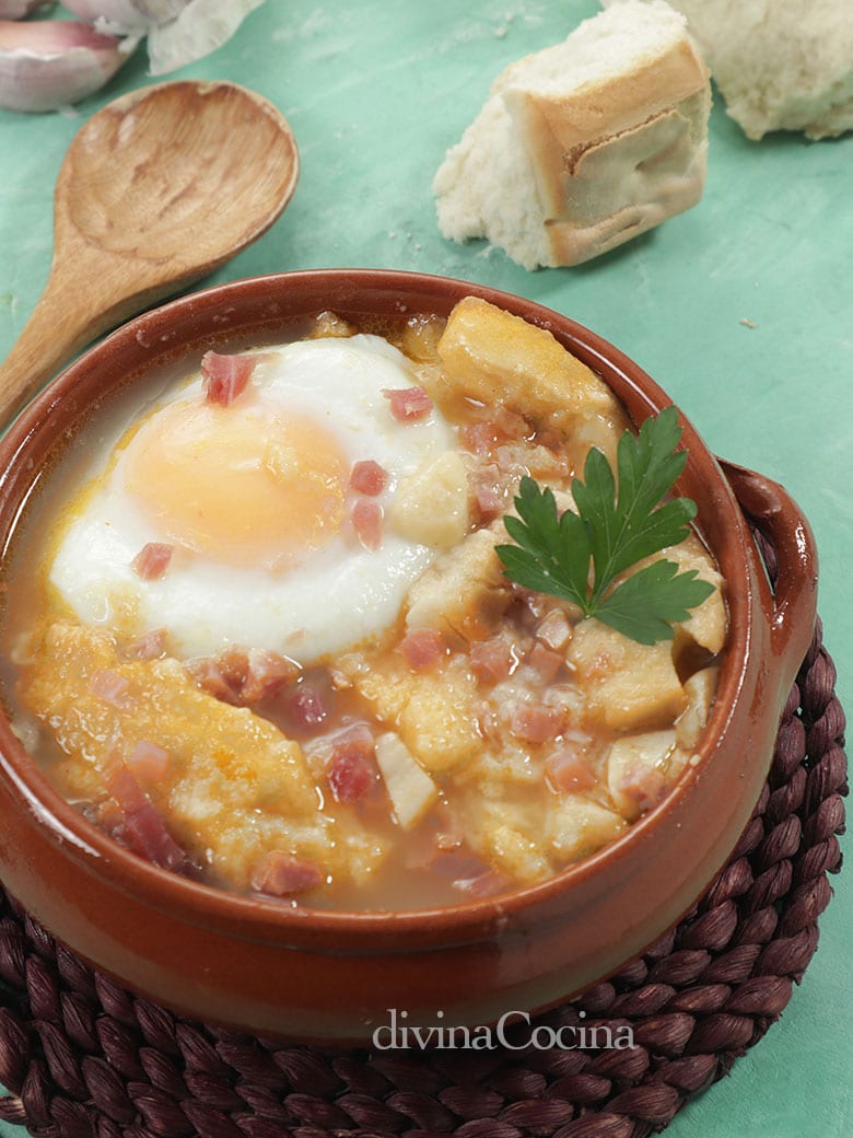 - Debe quedar una sopa espesa pero no demasiado seca. Si al final nos falta caldo podemos poner agua y rectificamos de sal. Suele servirse con un huevo cuajado.