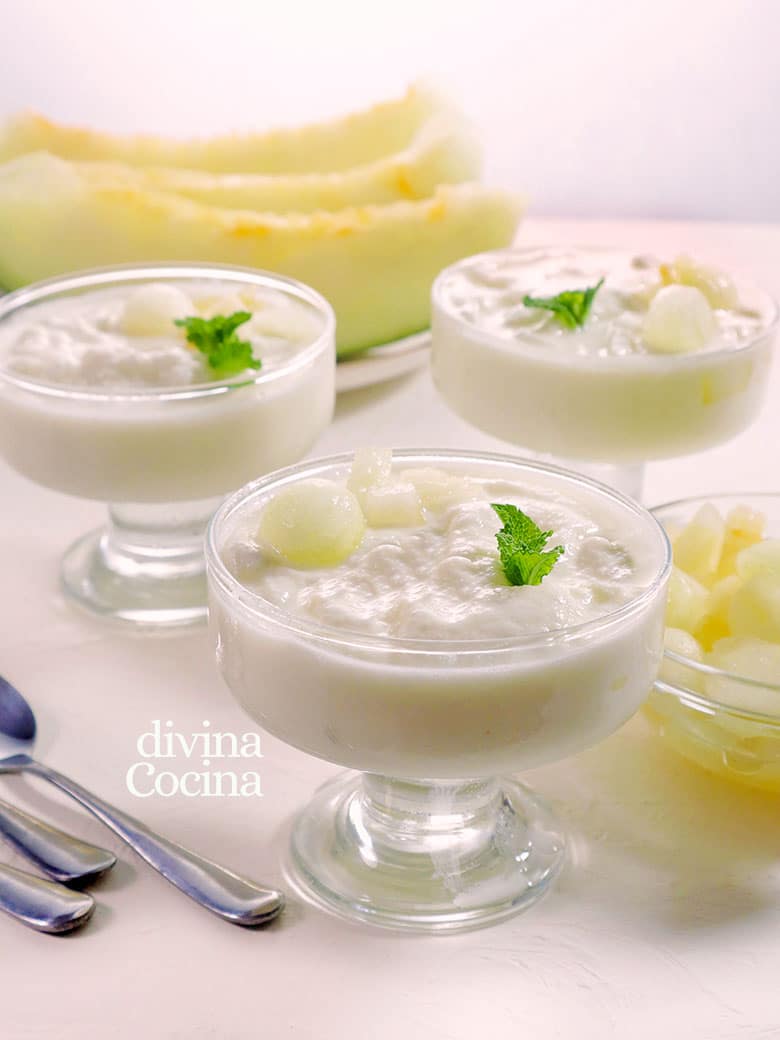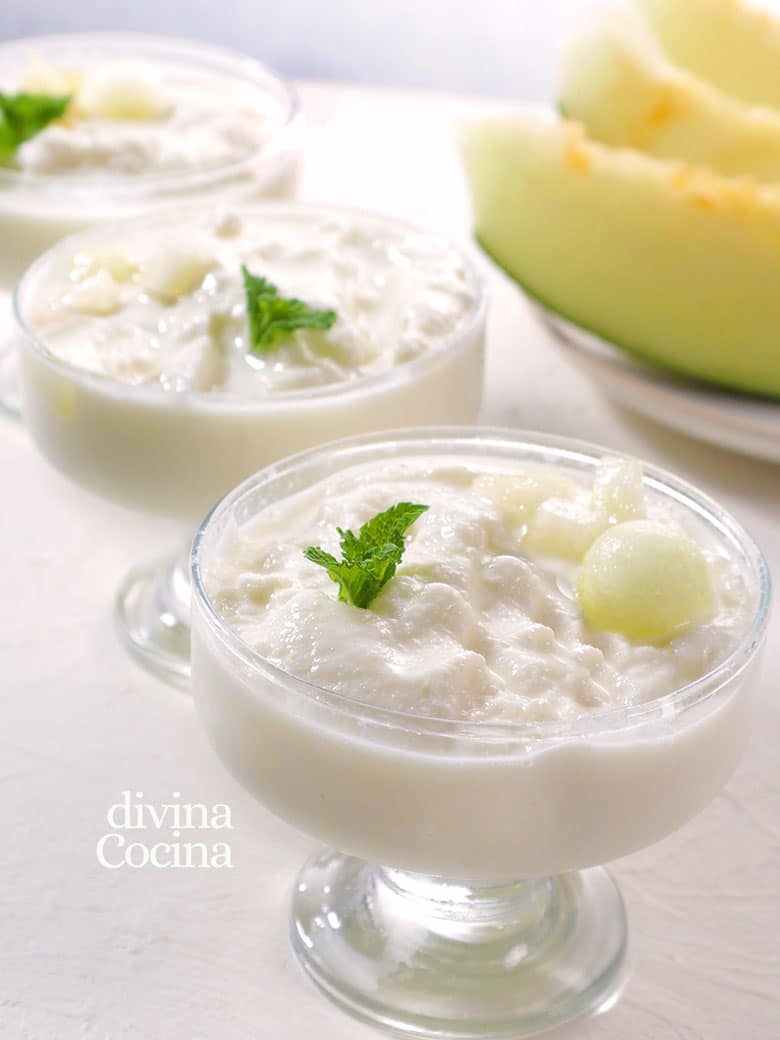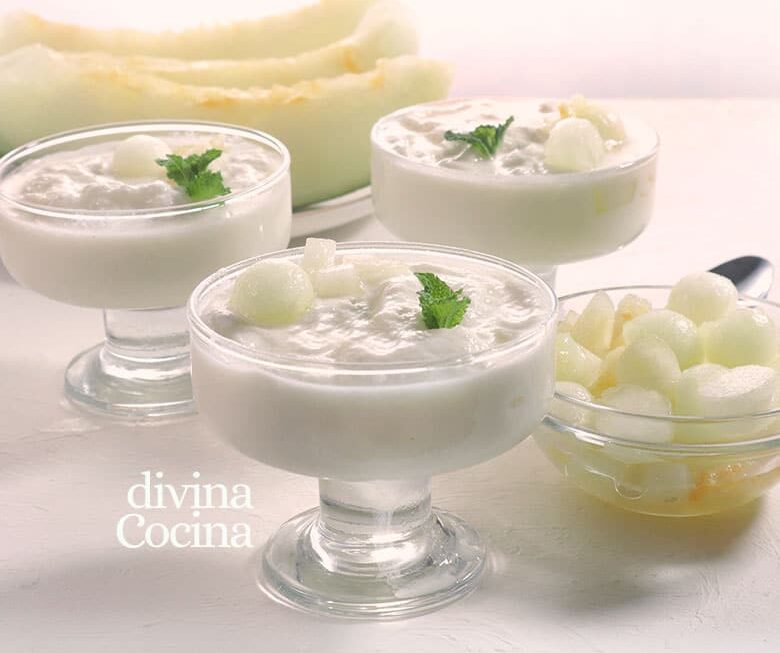 Como ves, solo necesitamos unas tajadas de melón dulces y frescas y un elemento graso que en nuestro caso es el yogur (mejor si usas yogur griego, más cremosos). Y si lo prefieres también puedes sustituir el yogur por queso crema.