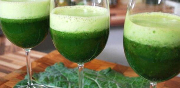 Passe pelo extrator de suco/centrífuga o pepino, a couve, o salsão, o gengibre, o abacaxi e a hortelã.