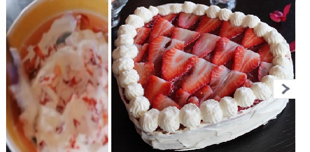 Cómo hacer una tarta de nata y fresas para San Valentín con forma de corazón. Receta sin lactosa.