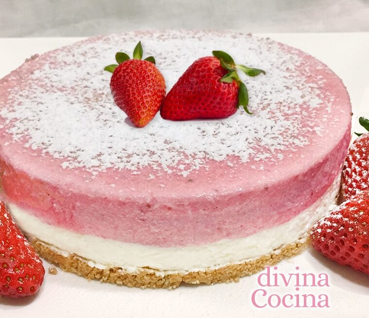 Con esta receta de tarta de nata y fresa fácil puedes preparar un postre de fiesta con resultado asegurado, siempre sale bien! No necesitas horno, solo unos pocos ingredientes sencillos.