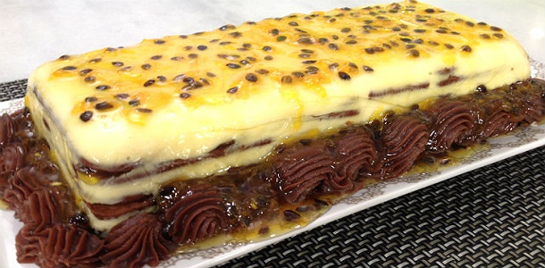 – Espalhe o doce de maracujá sobre a sobremesa e sirva gelada.