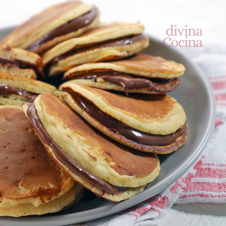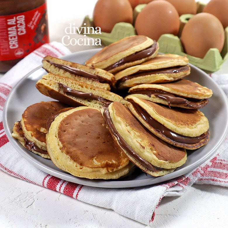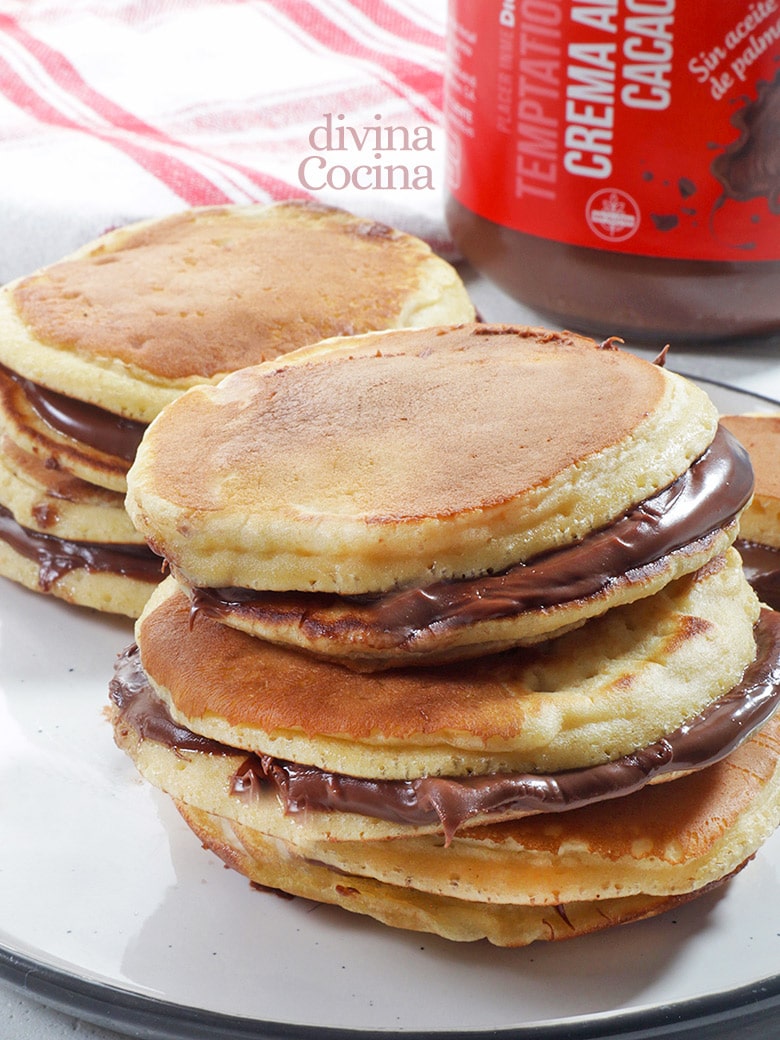Estas tortitas japonesas (Dorayakis) que vuelven loco a Doraemon son facilísimas de preparar. Son suaves y esponjosas y se rellenan con chocolate o crema a tu gusto.