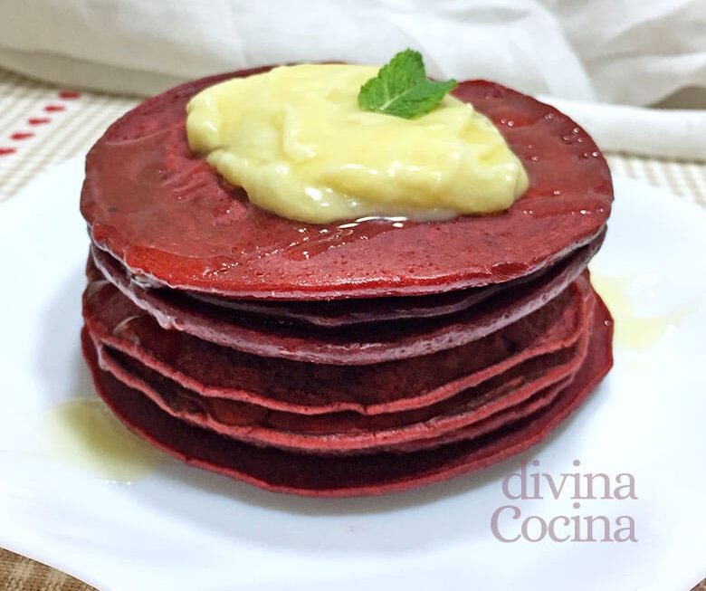 Con esta receta de Tortitas Red Velvet sorprenderás a todos con un detalle dulce muy especial. Todos los ingredientes son sencillos, y el colorante rojo lo encuentras con facilidad en cualquier sección de repostería en grandes superficies.