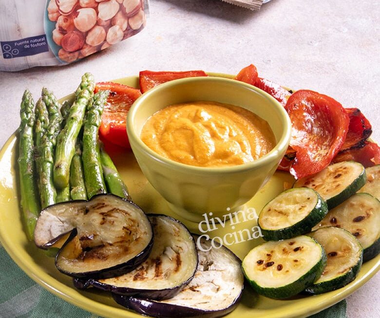 Verduras a la plancha con salsa romesco