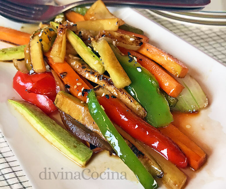 Estas verduras salteadas al estilo thai son una guarnición perfecta para muchos platos tanto de carne como de pescado. Un toque diferente lleno de color y sabor.