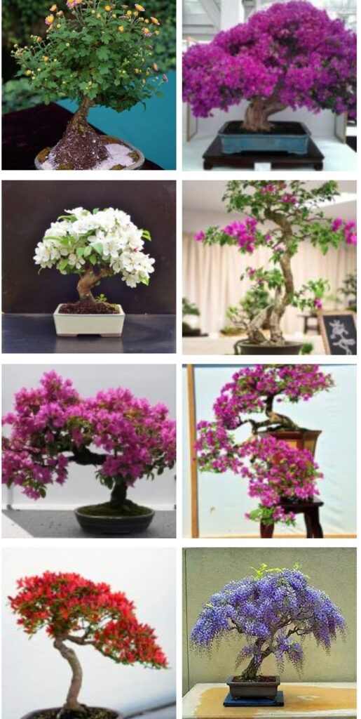 Hablemos ahora de los protagonistas de este artículo: los bonsáis en flor. Ya sea que estés buscando embellecer tu jardín, glorieta, patio, balcón, sala de estar o estudio, estos árboles bonsái no solo añaden un toque de esplendor natural, sino que también te conectan con la serenidad de la naturaleza en su forma más delicada.