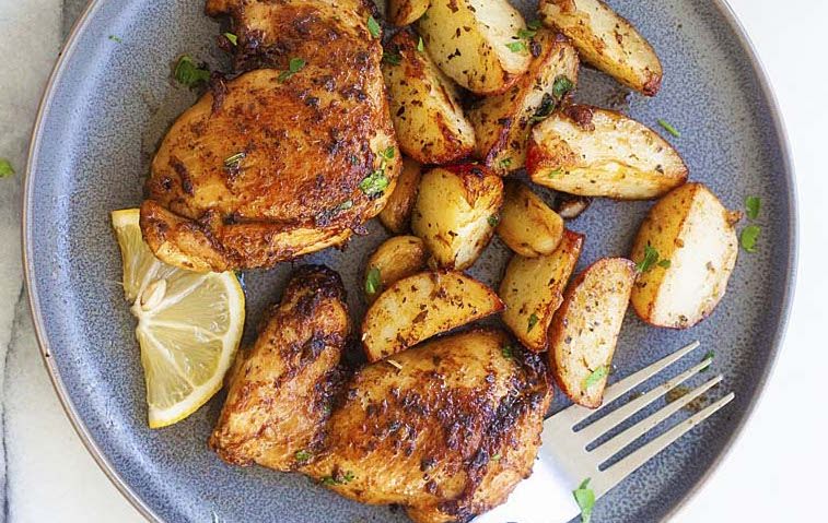En esta preparación, las pechugas de pollo son sazonadas con sal y pimienta, luego doradas en una mezcla de aceite de oliva y mantequilla para realzar su sabor.