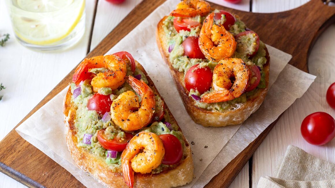 El crostini de camarones es un plato delicioso originario de la gastronomía italiana y que combina ingredientes frescos y sabores tradicionales. Esta versión en particular, incorpora aguacate, tomatitos cherry y camarones, creando una combinación de sabores típicos de la zona mediterránea.
