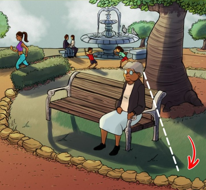 Si llegaste hasta aquí sin encontrar la respuesta, no te preocupes. Muchos también pasan por alto este error. El problema en la imagen es que la anciana en el banco no proyecta sombra, a diferencia de los otros elementos de la escena. ¡Es un detalle sutil pero crucial!